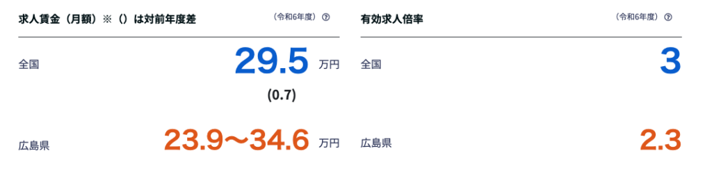 結論として、かなり現実的です。広島労働局のデータでは、広島県は求人が求職を上回る状態が続いており、営業職は特にニーズが高い傾向があります。給与も高い水準にあります。(有効求人倍率2.3倍)